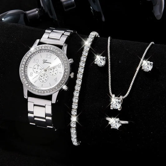 Montre de Luxe RUNER pour Femmes avec Bijoux en Pierres de Rhin - 6 Pièces